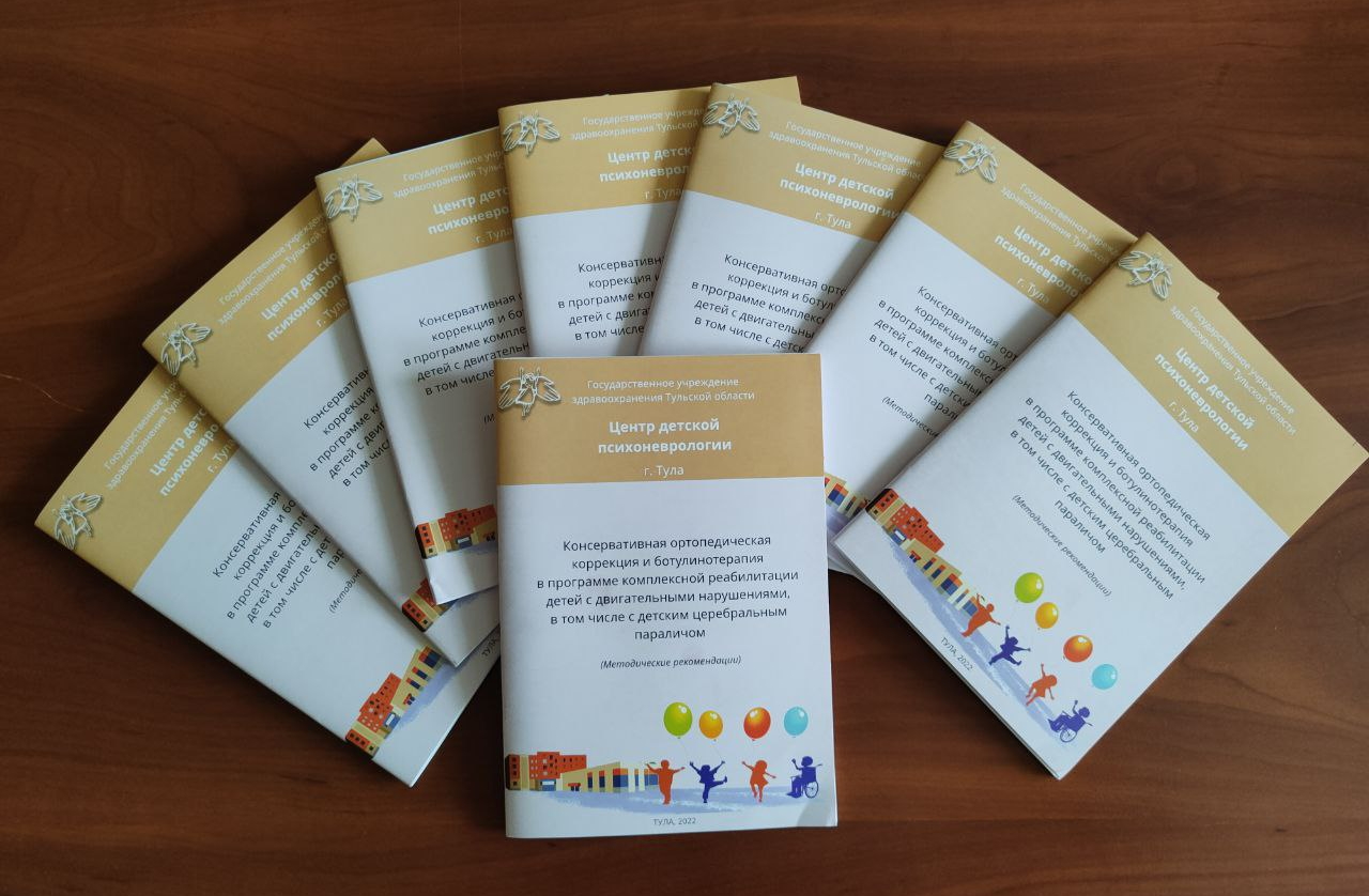 На средства гранта Правительства Тульской области специалистами Центра разработаны и изданы методические рекомендации «Консервативная ортопедическая коррекция и ботулинотерапия в программе комплексной реабилитации детей с двигательными нарушениями, в том числе с детским церебральным параличом», для специалистов учреждений здравоохранения (неврологов, ортопедов, специалистов физической и реабилитационной медицины, педиатров и др.).
