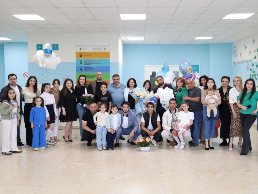 Сотрудники перинатального центра поздравили родителей с рождением малышей. На фотографиях запечатлена выписка новорожденного Геворга, родившегося в семье Анаит и Эдварда ( первое фото) и выписка новорожденного Матвея, появившегося в семье Даши и Максима (второе фото).