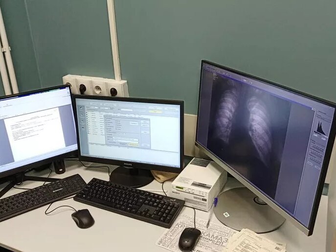 Современное оборудование помогает проводить профилактические осмотры и точно диагностировать различные заболевания, включая туберкулез, пневмонию, злокачественные новообразования. Пропускная способность аппарата — до 100 человек в день.