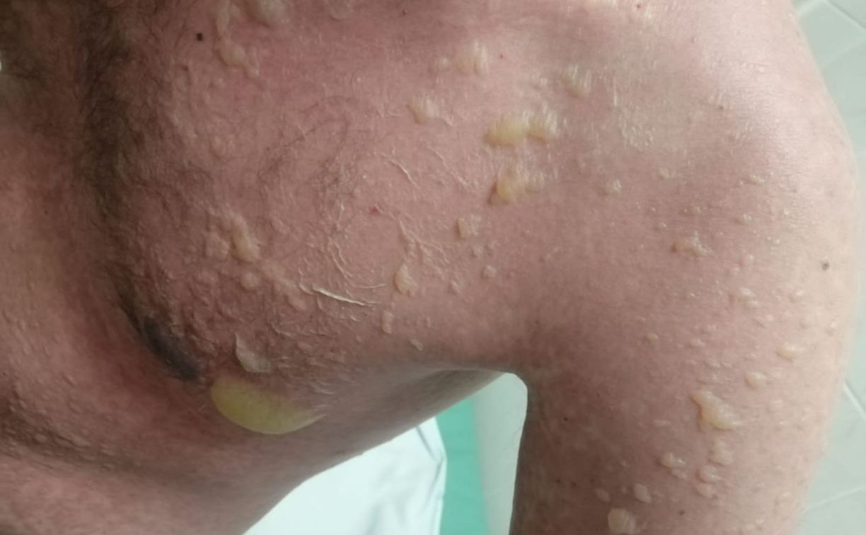 У мужчины была острая тяжелая аллергическая реакция, характеризующаяся образованием пузырей практически на всей коже.