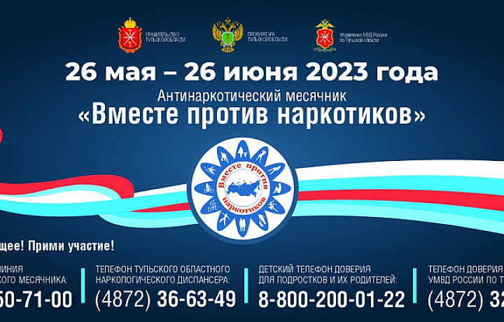 С 26 мая по 26 июня в Тульской области проводится восьмой антинаркотический месячник «Вместе против наркотиков».