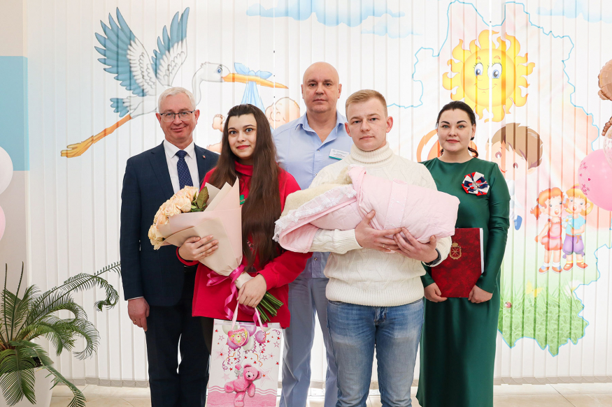 Министр здравоохранения Тульской области Михаил Малишевский поздравил семью туляков с рождением первого ребенка. Девочку назвали Анной. Она родилась 2 марта. Министр вручил родителям свидетельство о рождении, поздравительный адрес губернатора Алексея Дюмина и знак «Родившемуся на Тульской земле».
