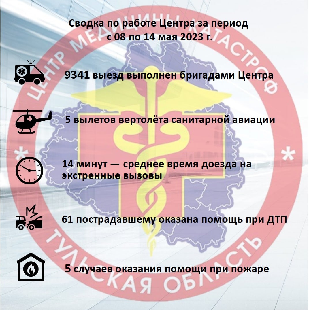 За прошедшую неделю медики скорой помощи Тульской области совершили 9 341 выезд, об этом сообщает Центр медицины и катастроф.