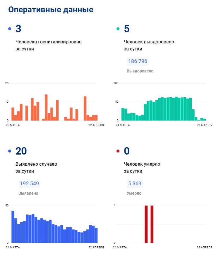 По данным на 22 апреля, за сутки еще 20 жителей Тульской области заразились вирусом COVID-19.