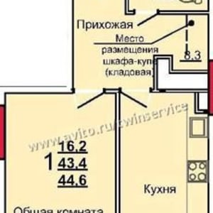 - Общая площадь: 44.6 м²