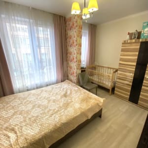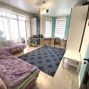 -Квартира готова для проживания, панорамные окна, эркер, су раздельный, две изолированные комнаты, балкон застеклен, встроенная кухня, посудомоечная машина, варочная панель, духовой шкаф, стиральная машина, встроенный гардероб в коридоре.