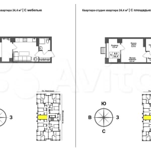 - Общая площадь: 24.4 м²
